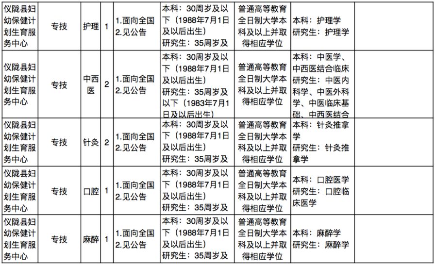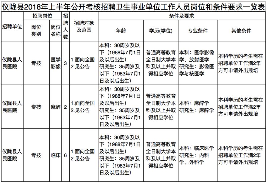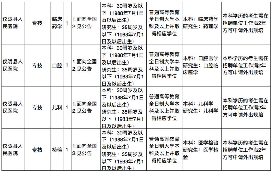 南充事业单位招48人,4月19日开始报名,看看有没有适合你的岗位发表时间:2018-04-12 13:14 三国文化之源——南充 点击上方“南充播报”即可关注我们 小伙伴看过来~ 南充一批事业单位招聘人才啦! 共计有48个名额。 具体有哪些单位? 接着往下看! 仪陇县公开考核招聘 卫生事业单位工作人员48名 招聘对象和范围: 面向全国公开考核招聘2018年7月31日前取得普通高等教育全日制大学本科及以上毕业证、学位证的人员。 仪陇县在职在编机关事业单位工作人员不属本次公开考核招聘对象范围。 报名时间: 2018年4月19日8:30—2018年4月20 日12:00。 报名地点: 仪陇县人力资源和社会保障局(四楼会议室)。 岗位条件见下图↓ (点击图片可放大查看) 公告详情请见↓ 点击【原文阅读】查看 |